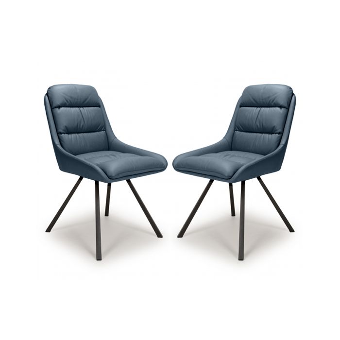 Arnhem Swivel Midnight Blue Leather Effect Dining Chairs In Pair
