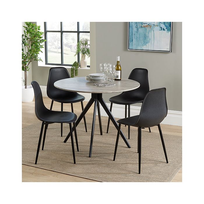 Aspen Grey Oak Round Dining Table With 4 Black Curve Plastic Chairs