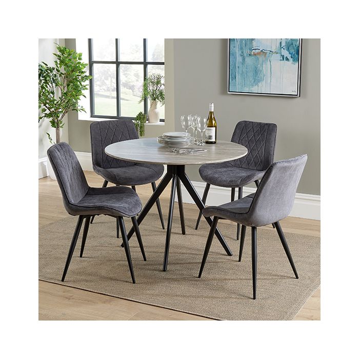 Aspen Grey Oak Round Dining Table With 4 Grey Fabric Chairs