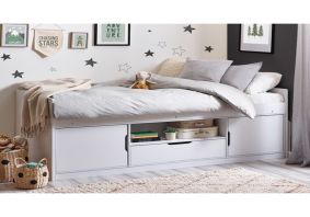 The Atom Low Sleeper provides plentiful storage within a small space, the perfect set up for kids and teenagers. Finished in all white, this low sleeper contains two cupboards, a drawer and a shelf, maximising space.