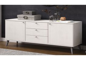 The Augusta Curve Medium Wooden Sideboard with 2 Doors and 3 Drawers in White from Elegant Furniture offers both style and practicality, perfect for modern living spaces. This beautifully crafted sideboard features a smooth, curved design and a fresh white finish that enhances any decor. Behind the two doors, spacious storage compartments provide room for larger items, while the three drawers offer organized space for smaller essentials, from tableware to personal belongings. Designed for durability and convenience, the Augusta Curve Sideboard is a sophisticated and functional addition to dining rooms, living areas, or entryways, blending elegance with everyday usability.