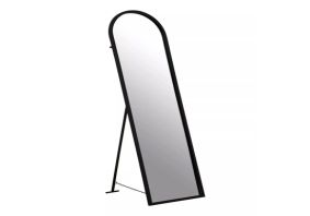 This floor mirror has a captivating rectangular shape with a curved side. It features a sleek and slender black iron frame that adds a touch of luxury. Its minimalist profile allows it to seamlessly blend into various decors.