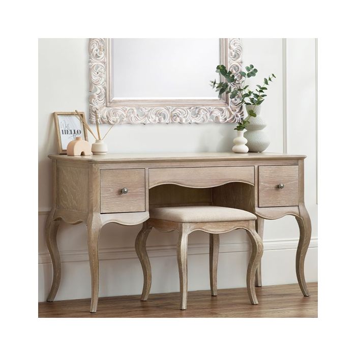 Camille Wooden Dressing Table And Stool In Limed Oak