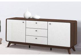 The Cassie Wooden Sideboard with 2 Doors and 3 Drawers in Walnut and White by Elegant Furniture UK combines modern aesthetics with practical storage. Crafted from durable wood, this sideboard features a sophisticated walnut finish complemented by clean white accents, creating a stylish contrast that enhances any interior. With two spacious doors and three functional drawers, it provides ample storage for tableware, linens, or other essentials, keeping your space neat and organized. Perfect for dining rooms, living spaces, or hallways, the Cassie sideboard is a versatile piece that adds elegance and functionality to your home decor.