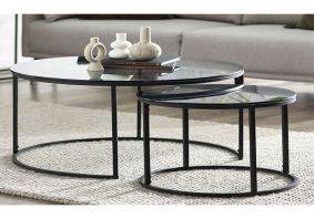 Chicago Round Smoked Glass Nesting Coffee Tables With Black Frame