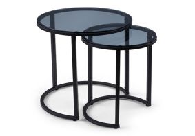 Chicago Round Smoked Glass Nesting Side Tables With Black Metal Frame