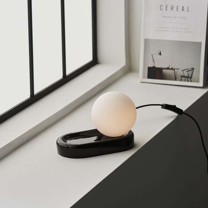Contour Matt Opal Sphere Glass Shade Table Lamp With Gloss Black Ceramic Base