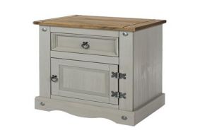 Corona Bedside Cabinet In Grey Wax With One Door And Drawer