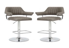 Cortez Charcoal Leather Effect Bar Stools In Pair
