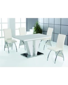 The Carnegie Dining Table offers an industrial design, perfect for your kitchen, dining room and other interior space. The use of solid Elm wood in a mocha finish adds a distinctive statement look, whilst beautifully showing off the wood grain. Finished with powder-coated steel legs in a pipework style, the Carnegie is sure to be an eye-catching piece in any room. This set includes a Carnegie Dining Table and 4 Monroe Dining Chairs.