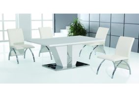 Costilla Wooden Dining Set In White High Gloss With 4 Chairs.