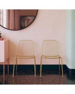 Amberley Natural Linen Fabric Dining Chairs With Gold Frame In Pair
