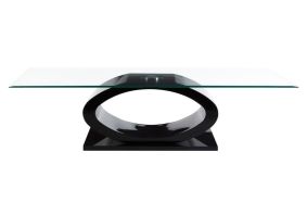 You could be forgiven for thinking the Hagley coffee table is a work of art with its chic, contemporary design, but be rest assured, it will make a functional and fashionable addition in your living space. The sleek, clear tempered glass surface is smooth and suitable for placing food and drink on, or why not decorate your room and display plants, lamps, flowers, photos and other ornaments, giving your home a personal touch. The striking 'O' shaped base is made from durable MDF and features a black hi gloss finish that accentuates the curved design. A rectangular bottom below the curved base ensures the table is durable and sturdy. A fantastic feature in your home, the elegant Hagley coffee table will impose a modern style in any setting.