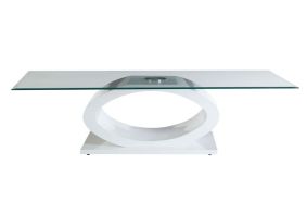 You could be forgiven for thinking the Hagley coffee table is a work of art with its chic, contemporary design, but be rest assured, it will make a functional and fashionable addition in your living space. The sleek, clear tempered glass surface is smooth and suitable for placing food and drink on, or why not decorate your room and display plants, lamps, flowers, photos and other ornaments, giving your home a personal touch. The striking 'O' shaped base is made from durable MDF and features a white hi gloss finish that accentuates the curved design. A rectangular bottom below the curved base ensures the table is durable and sturdy. A fantastic feature in your home, the elegant Hagley coffee table will impose a modern style in any setting.