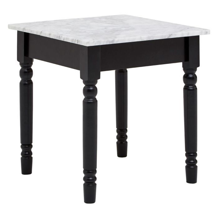 The Halden side table has a black and white palette that complements monochrome furniture. A square slab of natural marble forms the top of this handsome side table. The grey veins that pattern its surface offer a tonal bridge between the white marble and black legs. The legs feature rounded knop detail that subverts their straight lines, adding a touch of traditional design style to its aesthetic.