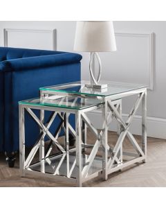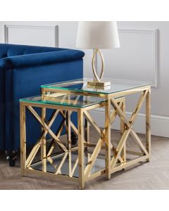 Herber Glass Top Nest Of 2 Tables With Gold Frame