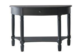 A beautiful feature in your hallway or living space, the Heritage console table, with single drawer, will provide elegance and practicality for your home. The half moon shape table is made from durable and lightweight Chinese oak, ensuring a beautiful natural grain with an Black finish accentuating each contour. The 4 legs are effortlessly carved to further the charming feel of the table, while ensuring stability. A single drawer is perfect for storing keys, wallets, loose change and much more for a clutter free look. Ideal for displaying a plant, lamp, photo or flowers on, you can add a personal touch to your home. Keeping your home organised and tidy, the half moon console table will make a wonderful feature in any setting.
