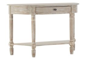 A beautiful feature in your hallway or living space, the Heritage console table, with single drawer, will provide elegance and practicality for your home. The half moon shape table is made from durable and lightweight Chinese oak, ensuring a beautiful natural grain with an Natural finish accentuating each contour. The 4 legs are effortlessly carved to further the charming feel of the table, while ensuring stability. A single drawer is perfect for storing keys, wallets, loose change and much more for a clutter free look. Ideal for displaying a plant, lamp, photo or flowers on, you can add a personal touch to your home. Keeping your home organised and tidy, the half moon console table will make a wonderful feature in any setting.