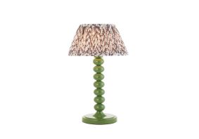 • 7W LED E14 (bulb not included) • Multiple stacked metal spheres table base • Gloss Cotswold Green painted finish • Handcrafted 20cm tapered shade • Gathered pleated design • Digitally printed pearl grey faux linen fabric • Taped edge detailing with plain inner lining • 1.5 metre colour matching fabric flex • Compatible with E14 LED lamps • Fantastic-Value, Only at Elegant Furniture UK