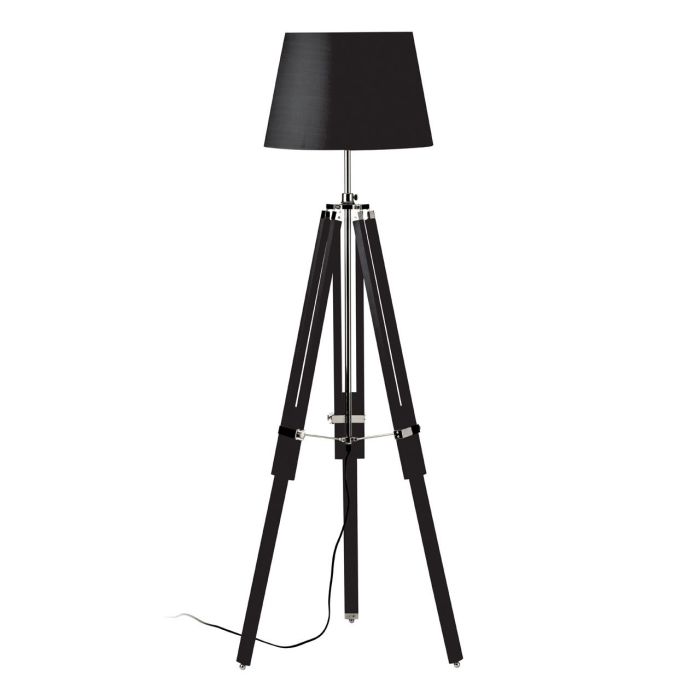 Contemporary in design, striking in style, functional in use, the black floor lamp will radiate chic and light into your room. The tripod base will provide stability and a unique look making the lamp a desirable feature in your home. Made with solid wood, a crisp black finish, and durable metal which is given a chrome look, the eye-catching feature lamp will enhance the look of your room. Matching the tripod base is the black shade that tapers at the top to continue the sleek style of the lamp. Ideal for use in your bedroom or living area, the feature lamp will complement most decors.