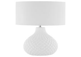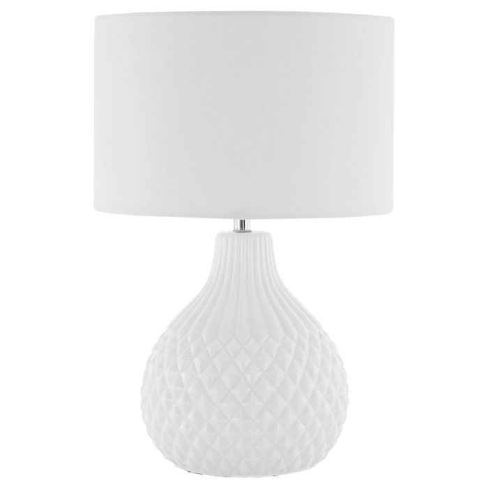 A table lamp can add the finishing touch to a room, and the neutral colouring of the Jax table lamp means that it will suit almost any interior. The base is made from ceramic, while its bulb-shaped outline gives it a soft look. The ceramic surface has a textured finish, while the ivory shade will radiate a soft glow to the surrounding area. Room placement is made easier with the lamp's 1.65 metre (approx.) plug cable, while the in-line switch makes it practical for everyday use. Brighten up your living area, bedroom, or hallway with the Jax ceramic table lamp with ivory shade.