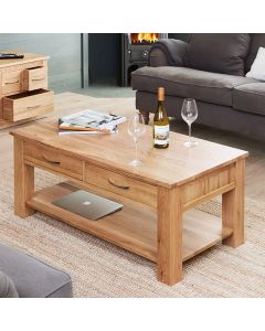 Juliette Wooden Console Table In Cream And Oak With 2 Drawers