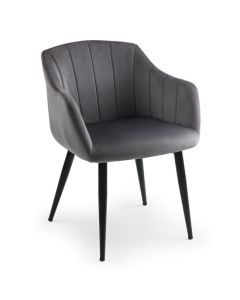 A classic roll back design dining chair, upholstered in striking Yellow check fabric. Sprung and belted seat. Supplied with natural rubberwood legs.