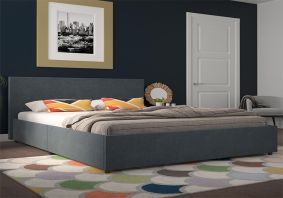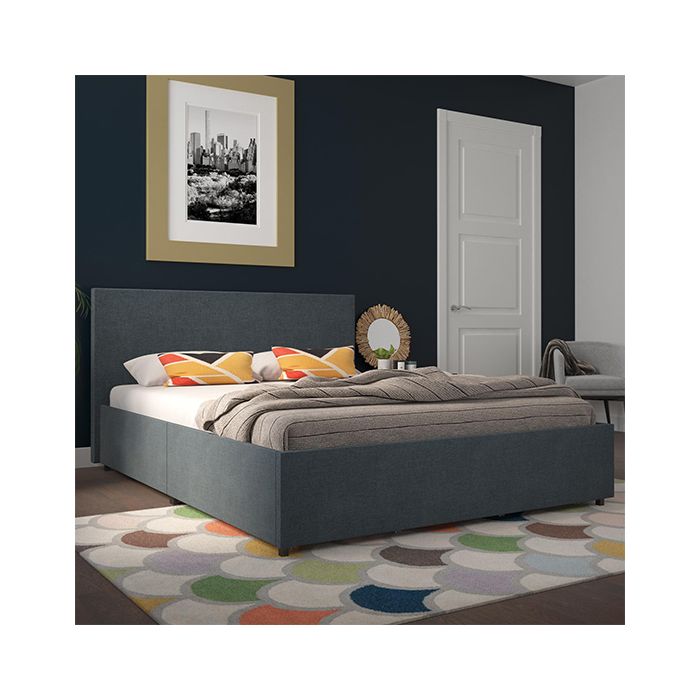 Kelly Linen Fabric Double Bed With 4 Drawers In Navy