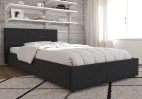 Kelly Linen Fabric Single Bed With 2 Drawers In Dark Grey