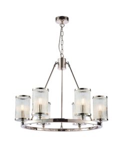 This chandelier lends a rustic character to the interior with its minimal design and organic charm. Skilfully crafted from hand-cut wooden beads strung around a grey finish iron frame, this chandelier forms a tear drop shape. The cascading strands in white finish illuminate the environment with their smooth structure and bohemian essence.