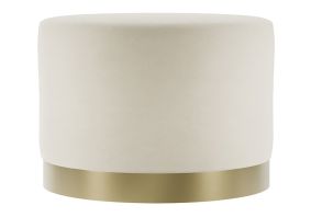 Lara Small Round Velvet Pouffe In Cream With Brushed Gold Base