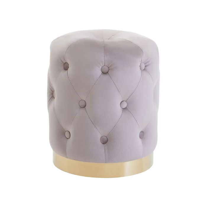 Add a touch of luxury to your home decor with the Loretta Mink velvet button tufted stool. It is upholstered in smooth Mink velvet textile which is complemented by the matte gold metal round base.