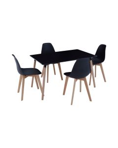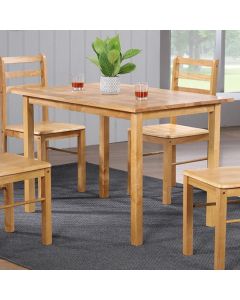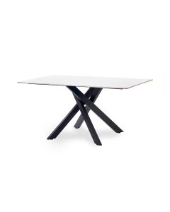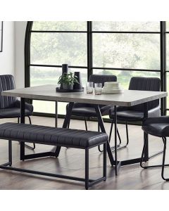This dining table in distinctive form is characterized by angular elements and a distressed appearance with plenty of rustic texture and warmth. Made from American oak, this dining table creates an unfinished look with a variation of colours. Aged grey tempered glass is inset in the rectangular top that blends with natural grain. The table has crisp edges supported with cross beam base creating a farmhouse flair.
