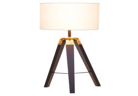 The Malvern tripod table lamp has a sturdy Brown wood base with a contrasting white linen cylinder shade. Made from Brown wood, this modern table lamp has a sleek tripod base with metal struts detail which helps in adjusting the height. The angular base contrasts the white linen shade that casts a luminous glow and softens the aesthetic.
