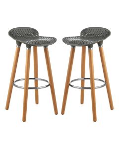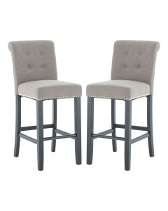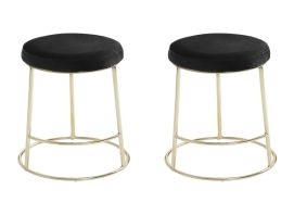 This bar stool offer a contemporary luxe styling with tactile velvet and crossbar footrest in the warm metallic finish. Designed for counter heights, this stool has a padded seat upholstered in black velvet. Sleek and minimal, the gold finish metal frame with footrest enhances the glam appeal of the design.