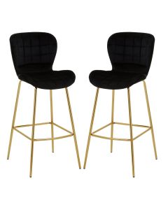 Manhattan Velvet Bar Stools In Black With Metal Frame In Pair