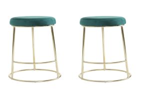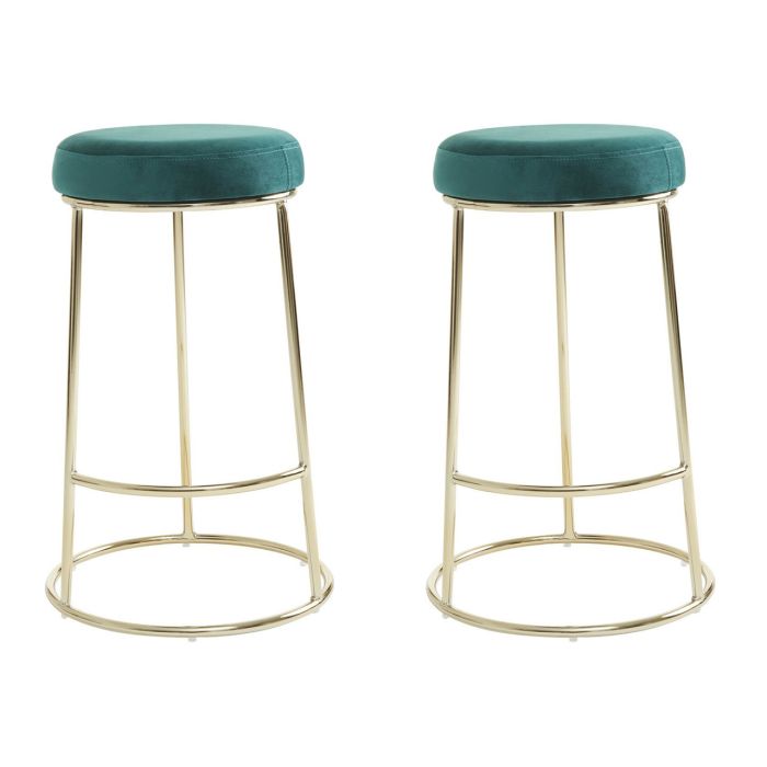 This bar stool offer a contemporary luxe styling with tactile velvet and crossbar footrest in the warm metallic finish. Designed for counter heights, this stool has a padded seat upholstered in Green velvet. Sleek and minimal, the gold finish metal frame with footrest enhances the glam appeal of the design.