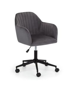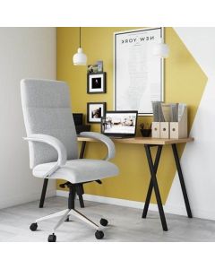 Senton Velvet Upholstered Home And Office Chair In White With Swivel Base