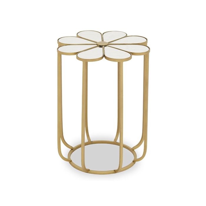 This side table will enhance the luxe living room decor with its glam design and botanical style. The flower cocktail side table with hand hammered petals forming a mirrored table top. A series of sleek gold finish lines descend from the top to create an elegant base openwork.