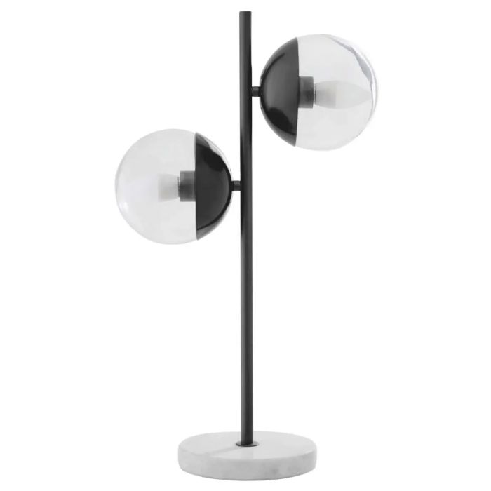 The Revive table lamp features a sleek and sturdy profile with two clear glass shades attached to a slim black finish stem. Simplistic yet versatile, this table lamp is supported by a sturdy white marble base in a round shape which ensures stability.