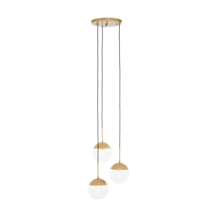 Revive Round 3 Clear Glass Shade Ceiling Pendant Light In Gold