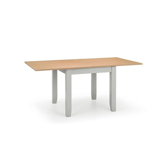 Finished in an elegant soft Elephant Grey finish with beautiful pale oak top, the RichmondFlip-Top Table is crafted from a combination of high grade White Oak solids and veneers. This imposing dining table allows you to easily double your dining space by simply flipping the top over creating more space for when you have guests, and when you are done simply flip the top back over to save floor space when not in use. The combination of superior quality materials and classic design ensures a timeless appeal and fits perfectly alongside both traditional and conTaiscerary decor.