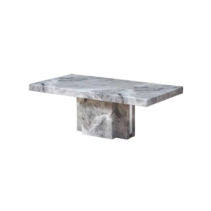 The Saronno grey marble coffee table with a silver trim will add a touch of sophistication and luxury to modern interiors.