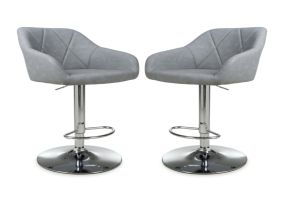 Serena Light Grey Leather Effect Bar Stools In Pair