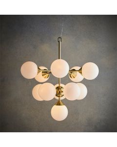 A luxurious side table that combines geometric design with organic elements. The base is composed of a series of iron triangular forms. The black finish forms a counterpoint to the white coloured marble set into the top. The result is a monochromatic accent piece that complements contemporary interiors.