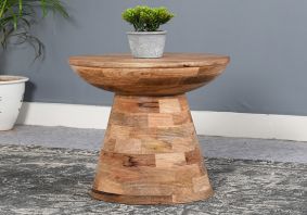 Surrey Solid Mango Mushroom Style Round Side Table. HANDMADE ENTIRELY USING 100% ECO SOURCED NATURAL WOOD.