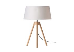 Vageya White Fabric Shade Table Lamp With Natural Tripod Wooden Base