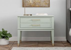 Westerleigh Wooden End Table With 2 Drawers In Light Green