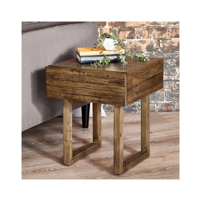 Woburn Reclaimed Pine Wood Lamp Table With 1 Drawer